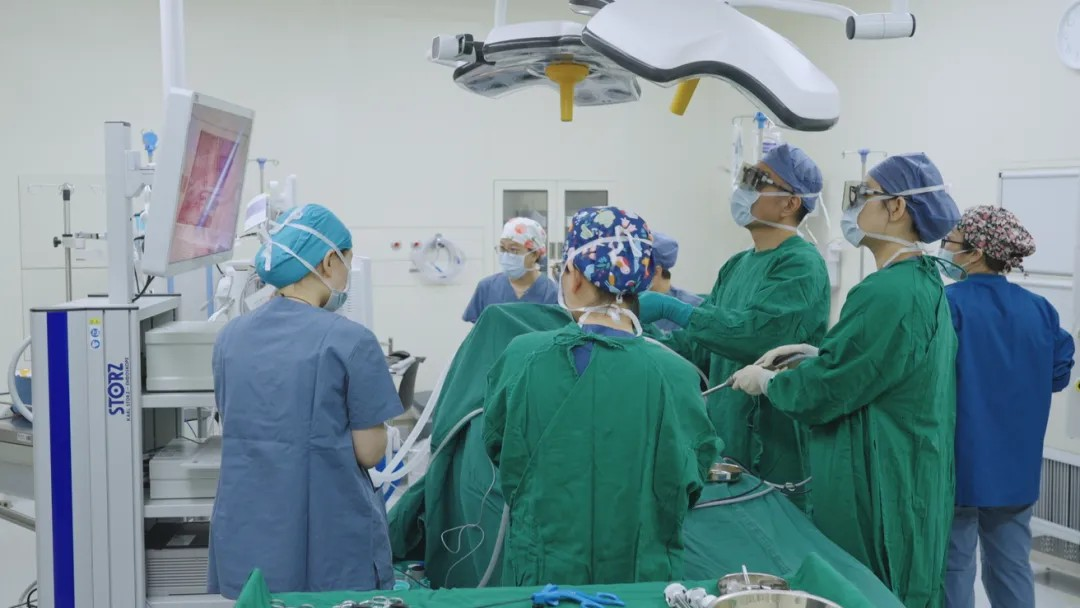 手術(shù)室裏燈火通(tong)明,外科(ke)、急診科(ke)、麻醉科(ke)多(duo)學(xué)科(ke)專(zhuan)傢(jia)迅速(su)集(ji)結,蔣主(zhu)任作(zuò)爲(wei)主(zhu)治醫(yī)生(sheng),利用(yong)3箇(ge)戳孔(其中(zhong)兩箇(ge)僅3mm)打開腹腔。